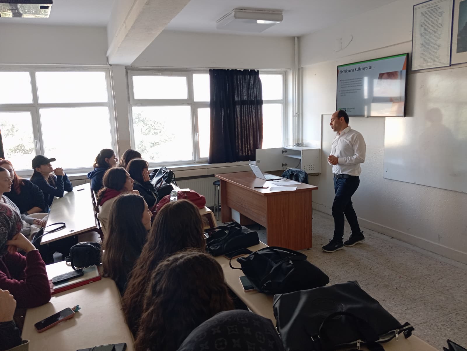 Üniversitemiz Danışma Rehberlik Uygulama ve Araştırma Merkezi Müdürlüğünde görevli olan Sosyal Hizmet Uzmanı Mehmet Yıldız’ın sunumuyla “Bağımlılıkla Mücadele Farkındalık Eğitimi” semineri düzenlendi. 15 Ekim 2025 tarihinde Keskin Meslek Yüksekokulu öğrencilerine yönelik gerçekleştirilen seminerde, bağımlılığın türleri, belirtileri ve önleme yolları hakkında bilgilendirme yapıldı. Mehmet Yıldız, özellikle gençler arasında artan dijital ve madde bağımlılığı konularına dikkat çekerek farkındalık oluşturmayı amaçladı. Etkinlik, öğrencilerin aktif katılımıyla verimli bir şekilde tamamlandı.